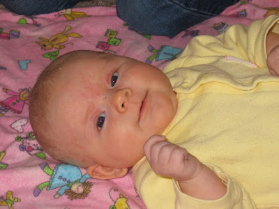Kaylee Maria Baker was blessed March 29th, 2009 in Los Alamos New Mexico by her dad! It was a great day! My mom and Christian were down for spring break and Beth and her family drove down for the weekend. So Kaylee had both sets of Grandparents, all of her cousins, and most of her aunts and uncles here. Alex blessed her and one of the ladies in our ward who writes short hand copied it down for us (what a nice gift!). The circle also included Max (Grandpa), Nathan (uncle), Keith Morgan (friend), and Josh Miller (friend) and Bishop Betts (bishop).  After church we had a family lunch and celebrated!